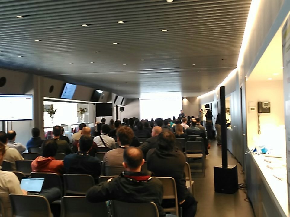 La sala de conferencias es muy diferente a la de otros años. Si bien cuando se hacía en «La torre de Cristal», la sala era demasiado abierta (apenas 5 ó 6 filas con 50 columnas), en esta ocasión, la sala era muy, muy estrecha (35 filas y unas 10 columnas) aunque por suerte, pantallas y altavoces repartidos por la sala permitían que cualquiera (independientemente donde estuviera sentado) pudiera seguir bien la conferencia.